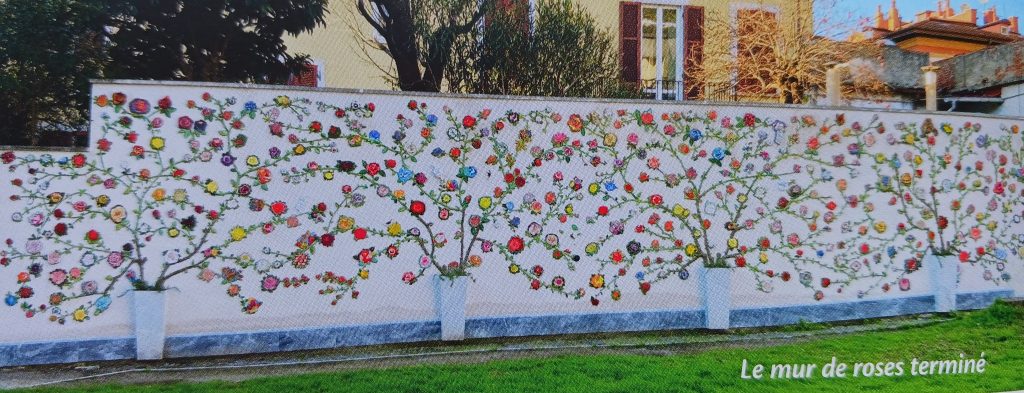 Ce mur dans une zone délaissée de la ville, mesure 3,60m de haut et 21 m de long . Les habitants de la ville de Carrare et les touristes du monde entier viennent admirer cet immense rosier multicolore en mosaïque sortant de jarres en marbre blanc
