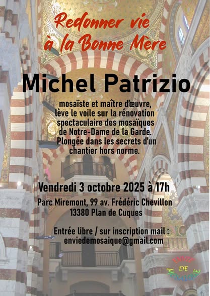 Le mosaïste et maître d’œuvre du chantier Michel PATRIZIO dévoilera les coulisses de la restauration des mosaïques de Notre-Dame de la Garde à Marseille